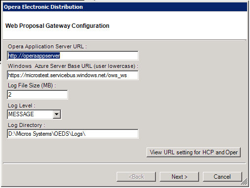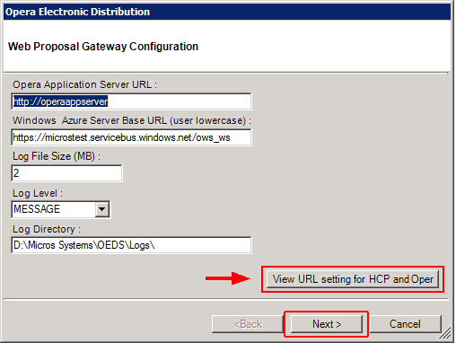 To get the values select the "View URL setting for HCP Opera" button on Web Proposal Gateway Configuration under OEDS Configuration editor.