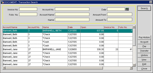 Name. Enter the guest's name or the first part of the guest's name to display transactions related to charges incurred by that guest.