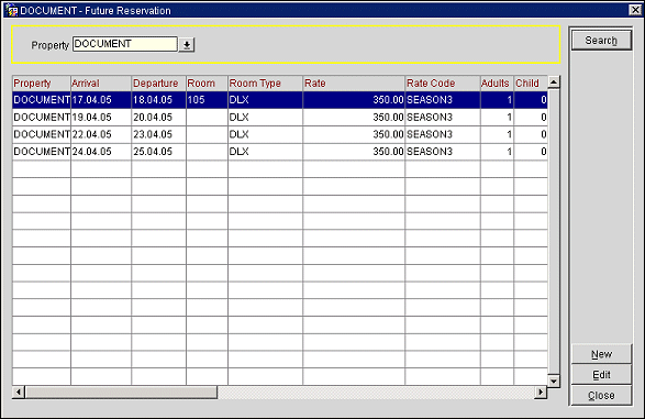 Property. If the OPERA Multi-property license (MHOT) is active, select the property at which you wish to find future reservations for this account.