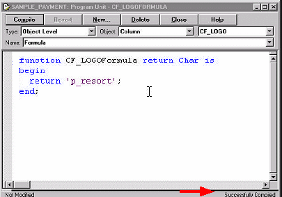 Insert the following line as shown: return ‘p_resort’; Compile your changes and make sure that you see the Successfully Compiled message at the bottom of the screen. |