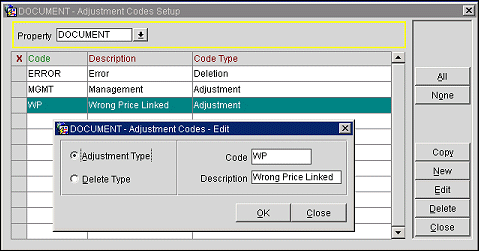 If the OPP_MHOT Multi-property add-on license is active, you may copy adjustment codes set up for one property to other properties in the multi-property cluster.