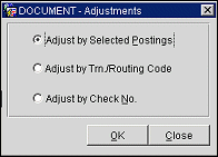 Select the Adjust by Selected Postings radio button. Select OK to display the Adjust Transactions screen.