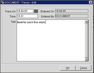 Trace On. By default, today's date appears here. You may change the date to any future date to indicate when action must be taken on the trace.