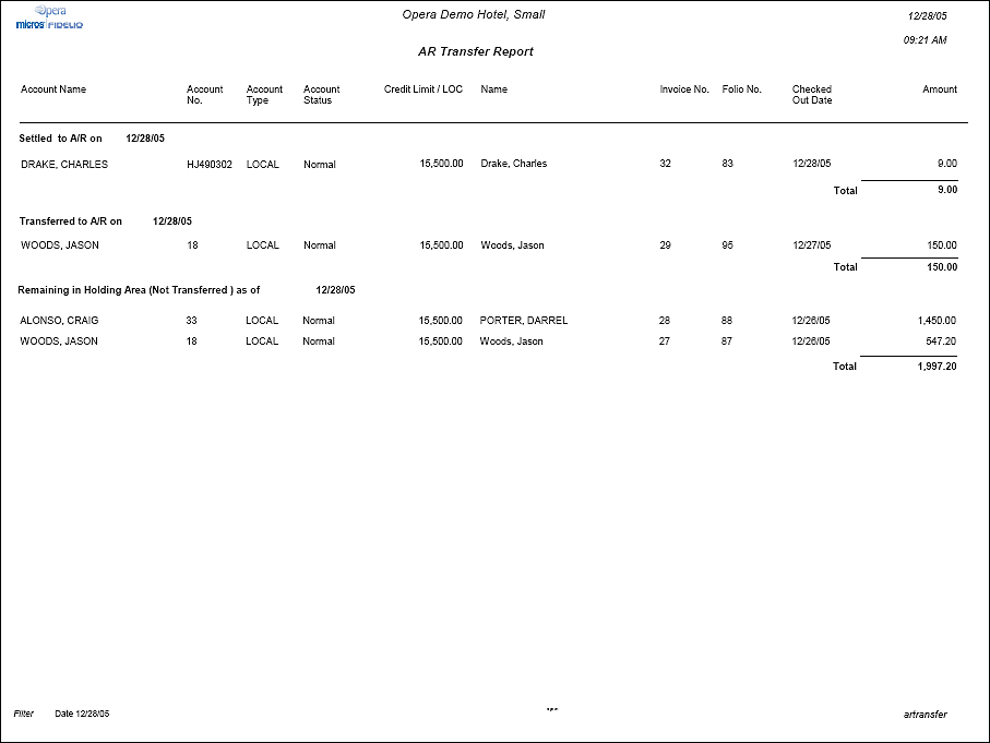 Auditors and accounting personnel can print this report to verify and validate all transferred transactions for the day, or to have a list of all transfers to Accounts Receivable posted during a shift.