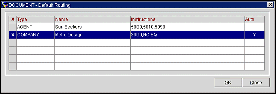 X. An X in this column indicates that the routing type has been selected to be attached to the reservation. Only one routing type may be associated with the reservation at a time. The routing instructions for that routing type will be applied to the reservation.