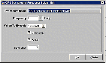 Sequence. Specify the order in which this process is listed in the Background Processor Setup screen.