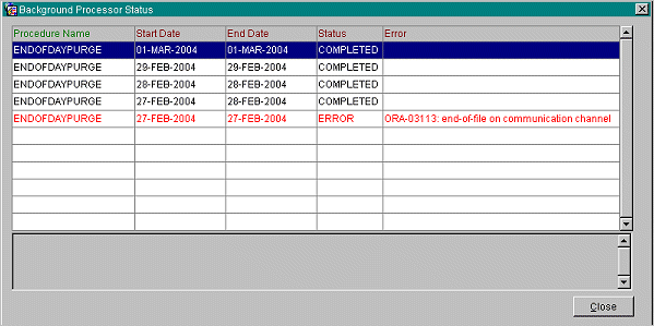 Close. Close the ORS Background Processor Status screen.