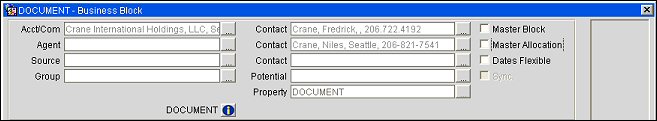 Create the business block as you normally would using the Business Block (Reservations>Blocks>Business Block) screen or when the OPS<version number> OPERA Sales and Catering license is active, select Business Management>Business Block from the main menu to display the Business Block screen. For a more detailed explanation of creating blocks see Business Block Header. Select the Master Allocation check box (located at the top-right of the Business Block screen) before saving the business block for the first time. The Master Allocation must be created for the property at which the rooms will be deducted.
