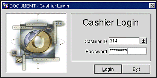 The Cashier Login screen appears whenever you are about to begin using many of the Opera Cashiering functions. When this screen appears, you must log in to the Cashiering module with a cashier ID and your user password.