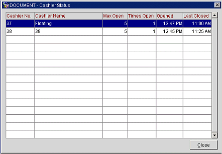 Max Open. Number of times users can close and re-open this cashier ID in one business day.  This value is set during Cashier setup.