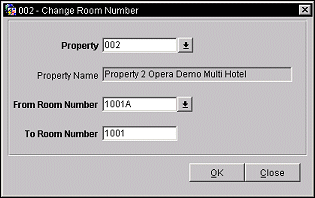This option is intended for quickly changing one room number to another corresponding room number. This feature was especially designed for use when an ORS system has been in existence at a property where a PMS system is being activated.