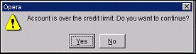A credit limit is set for each AR account. If the guest's bill exceeds the credit limit for the account you will see the following message: