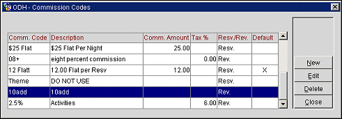 From this screen you may create new commission codes, edit existing codes and delete codes you have not used.