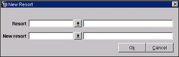 The New Resort screen provides a convenient way to add a new property and rates to the corporate agreement. You can select an existing property associated to the corporate agreement whose rate codes you want to select. Then, you select the new property you want applied to the corporate agreement. (The new property must already be set up.)