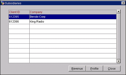 Profile. Select this button if you want to view the highlighted subsidiary company profile. The Profile screen appears.