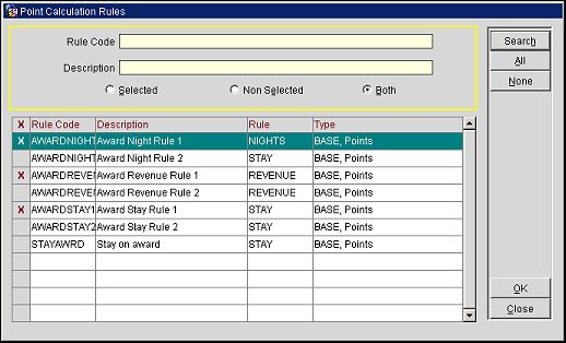 Rules. Select the down arrow to select/de-select the Rule Codes to be included/not included in the Rule Group. Point Rules that have been configured for the same membership type that the Rule Group is being created for will be displayed.