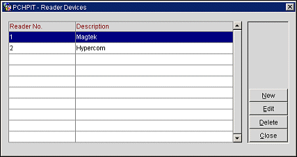 Edit. Select to edit the highlighted credit card reader device.