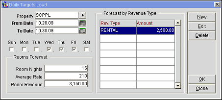 Edit. Edit an existing Forecast by Revenue Type record from this main screen. Daily Targets screen appears.