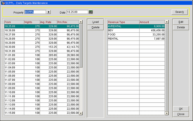 Load. Adds a new daily target record(s). Takes you to the Daily Targets Load screen. Daily targets can be transferred from remote properties to SFA via OXI when the appropriate business events are configured: