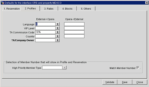 Match Member Number. Check this option if you want to give priority to the profile matching member number rather than a specific member type. During download the profile-matching module attempts to find an existing OPERA profile to merge the incoming data with. If the match can be made based on a member number that is linked to an existing profile, this member number will be visible on top of the reservation screen and as first record in the profile memberships.