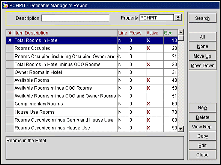 View Rep. Allows the property to view the report after making modifications to it. See Viewing the Manager's Report for details.