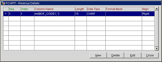 New/Edit. Enter new or modify the columns that will be exported. As the export line begins to have the columns added to it , it can be expanded or collapsed by clicking on the + or - sign in the extreme left column.