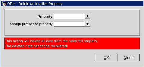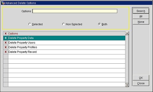Note: A hidden Advanced feature option makes it possible to control other aspects of the delete such as Delete Property Data, Delete Property Users, Delete Property Profiles and Delete Property Record. This feature should only be used in exceptions and implications of deselecting options must be understood by the Administrator that performs the property delete.