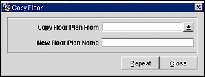 To copy a floor plan so that you can use it as a template to construct a new floor plan (with modifications) select the Repeat button on the Floors screen. The Copy Floor screen appears.