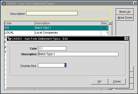 Sequence. Enter a sequence number, if desired. The sequence number determines the order in which the interest codes appear in the Auto Folio Settlement Types list.