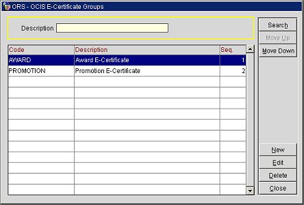 Search. Select to search for the E-Certificate Group based on the description entered. If no description is entered, then all of the groups will be displayed.