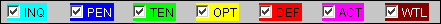 A series of check boxes in the lower part of the screen allow you to control which functions are displayed, based on their status. Select the statuses for the events you wish to show in the event block grid by marking the corresponding check box. The event blocks will be shown in the color that matches the event status. The color will be shaded if the function space is unavailable.