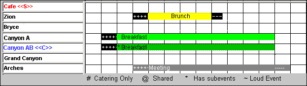 A shaded block displays for a combo room if any part of that combo room is booked. In the above example, Canyon A is booked for breakfast so Canyon AB is shown as shaded.