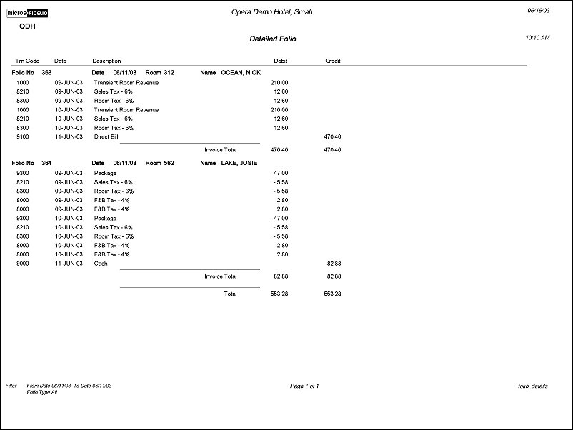 This report was developed to meet reporting requirements for properties located in Poland. The intent is to display all amounts posted to a guest folio for the specified date as well as a summary of all folios generated.