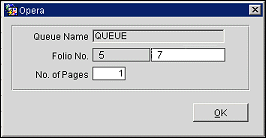 Queue Name. Folio printer queue that identifies the printer used to generate the folio. View only.