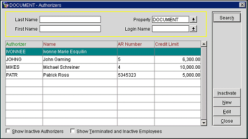 Show Inactive Authorizers. Select this check box to list only inactive authorizers. When you are displaying inactive authorizers, the Re-activate button becomes available. Use this button to re-activate the authorizer. The New and Edit buttons are not available.