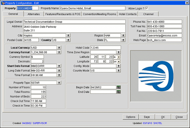 End Date. Date the property is no longer active. Available when the OPS_<version number> OPERA S&C license is active.