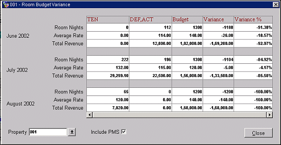 Include PMS. Select this checkbox to include PMS rooms budget information.