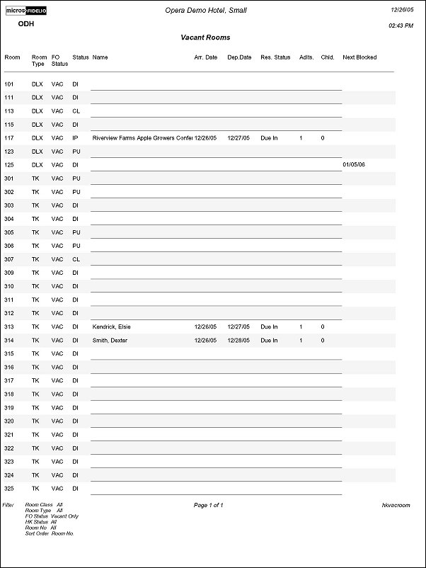 Vacant Rooms Report (hkvacroom with HSK1.FMX)