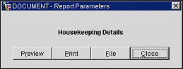 Select the Report button to create the Housekeeping Detail Report. If one or more rooms are marked with an X in the X column, the report will cover only those rooms. When no rooms are marked with an X, the report will cover all rooms included in the grid. Options include: