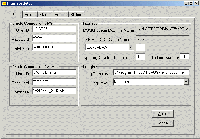 for interface list of values Select the interface type that is installed. Choices are currently OXI-OPERA, OXI-V6, OXI-V7, OXI-CLS. If you have multiple interface installed, you would select one first, set the threads, and then select the second, set the threads for this, and so on.Upload/Download Threads. Enter the number of simultaneous processes (threads) used for upload and download transactions.