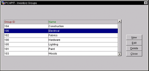 The Inventory Groups screen displays the following information.
