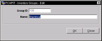 Provide the following information in the Inventory Groups - New or Inventory Groups - Edit screen and select the OK button.