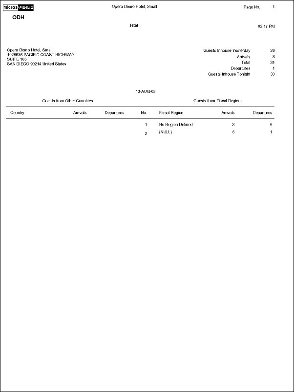 The Italian Country Statistics Report generates statistics that adhere to the legal reporting requirements for properties located in Italy. The contents and the display are dictated by the government. The Countries parameter must be set to Italy for the report to populate correctly. The report provides a statistical breakdown of reservations by either month or day. The breakdown is either by region for Italian guests, along with State and Country for all other guests. The monthly output displays the reservation statistics for those guests from Italy, and the daily output provides a statistical breakdown of all Italian reservations and of any foreign guest reservations. This report must be manually added to the Reports menu.