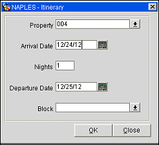 Nights. Enter the number of nights to reserve for the itinerary booking. The default is 1.