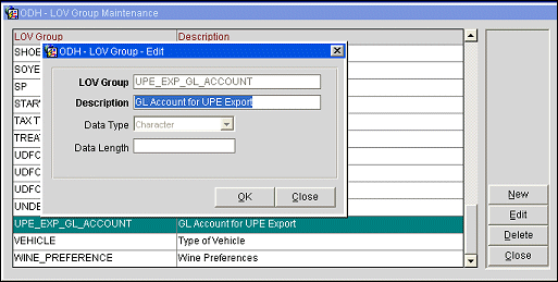 Use Configuration>Setup>Screen Design>List of Values Maintenance>LOV Group Maintenance to set up lists of values groups used within OPERA as defined by your Screen Design setup or as required for Export Mapping. Users must first create Group names which correspond to the field, and then create data (values) for each Group name, which will become the available options the users will see within the List of Values for that field.
