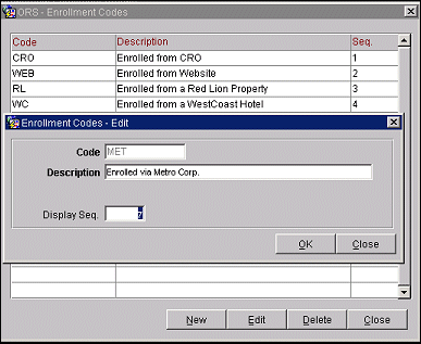 Display Seq. The display sequence number for this membership enrollment code in LOVs. If no sequence number is assigned, codes will display in alphabetical order following any codes that have a display sequence number assigned.