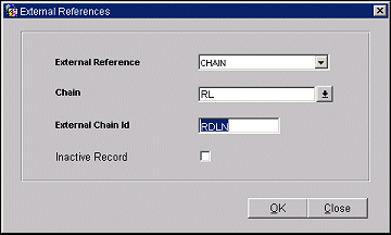 Inactive Record. If this box is checked, the external reference will be inactive and will not be utilized. You may want to check this if you are setting up a new external reference that you do not wish to activate yet.