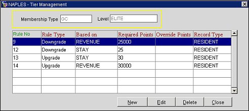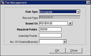 Membership level rules determine the tier points required to upgrade a guest's membership to a higher level or downgrade it to a lower level. These level rules are applied when the upgrade/downgrade batch is run. Upgrade/downgrade decisions are based on factors such as: