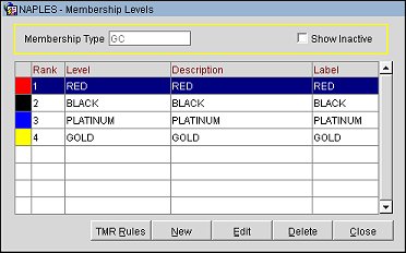 From Membership Levels, select the TMR Rules button to open the TMR Level Rules Configuration screen.