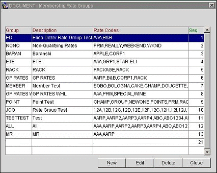 Rate Codes. Select the down arrow to display a multi-select list of values. Choose all of the rate codes that are to be included in the membership rate group. In a multi-property environment, select all the rate codes, across the entire set of properties or chain, that are applicable for the selected membership rate group.